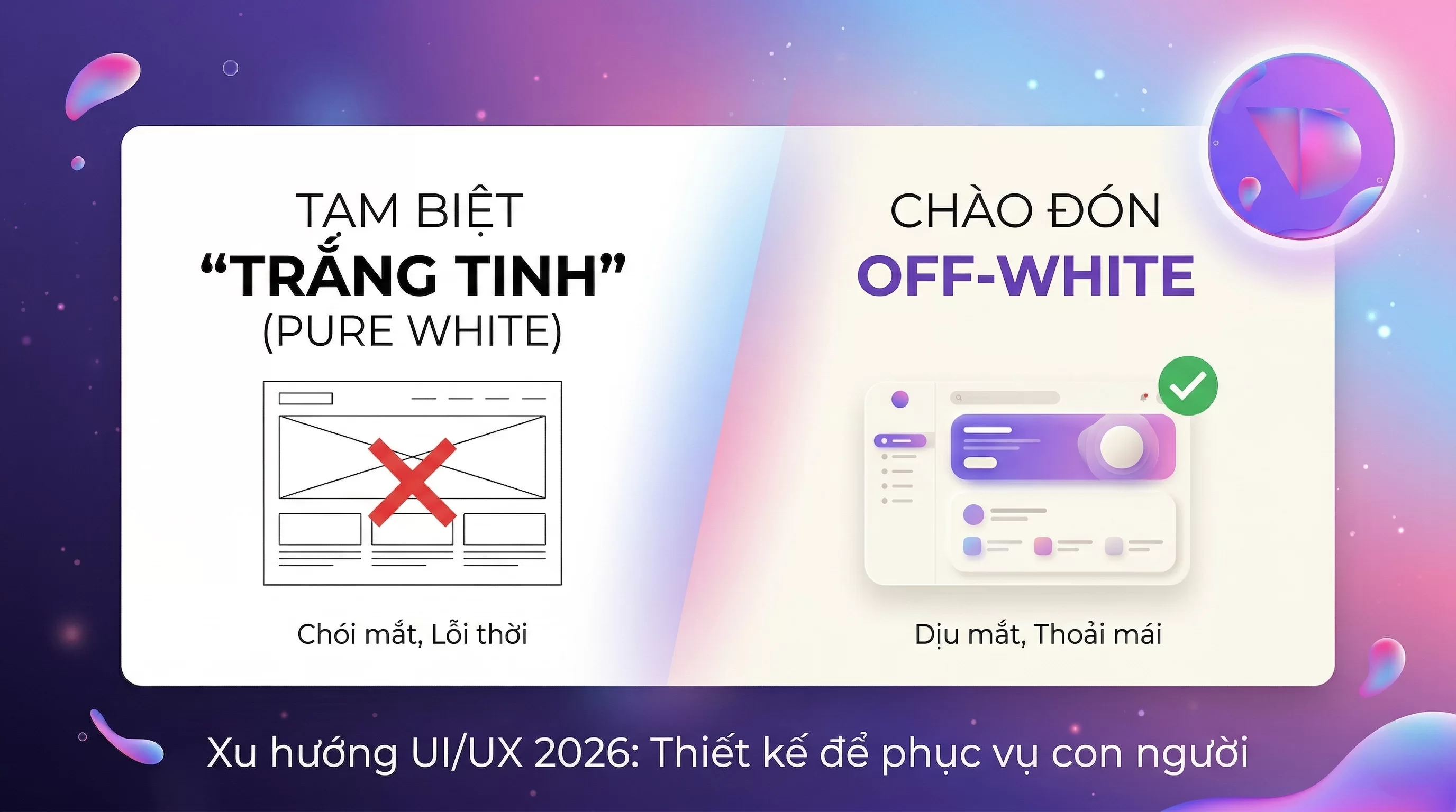 Màu trắng thuần (#FFFFFF) trên các thiết bị phát sáng hiện đại thường tạo ra độ chói lớn, gây nhức mỏi mắt khi nhìn lâu. Kỷ nguyên của sự thoải mái đánh dấu sự lên ngôi của các dải màu Off-White (trắng ngà, xám nhạt, hoặc các tone màu pastel cực nhẹ).