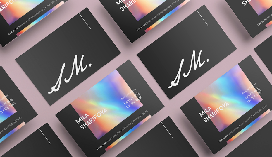 Hãy nghĩ đến những tông màu ngọc trai lung linh trên nền tối. Với các màu gradient, những tâm danh thiếp này trông khá lung linh và thực sự nổi bật.